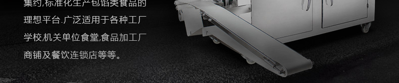 廣泛適用于工廠、學(xué)校、機關(guān)單位食堂、食品加工廠、商鋪、餐飲連鎖店等,為個人及相關(guān)企業(yè)提供高速、集約、標準化生產(chǎn)包餡類食品的理想平臺。