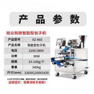 名稱(chēng)XZ-960多功能包子機(jī) 電源220/380V 功率3kw 產(chǎn)量 尺寸1260×1200×1430mm 重量340kg 規(guī)格 其他
