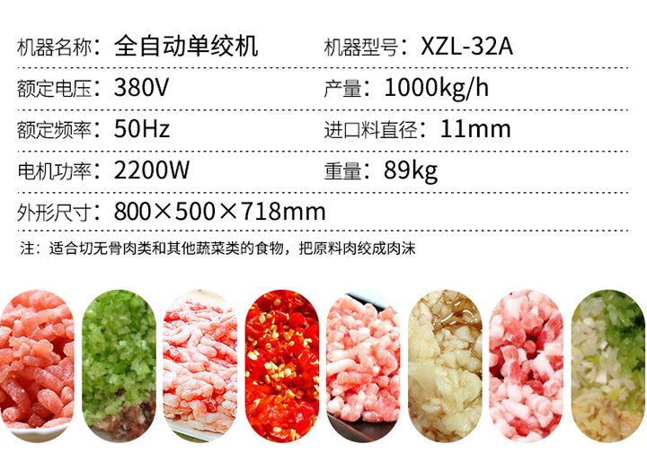 XZL-32A單絞機吸取同行之優(yōu)點,改進新型絞肉切肉機械,它能切豬肉、羊肉、牛肉、魚及其它各種肉類、所切肉片厚度適中切片效率高,是餐廳、賓館、酒樓、單位食堂等絞肉切肉的理想機械,該機外形獨特,操作方便,維修簡單,工作效率高,在同行業(yè)中處領(lǐng)先地位,與食物接觸部分均采用不銹鋼制造符合食品衛(wèi)生標(biāo)準(zhǔn)。