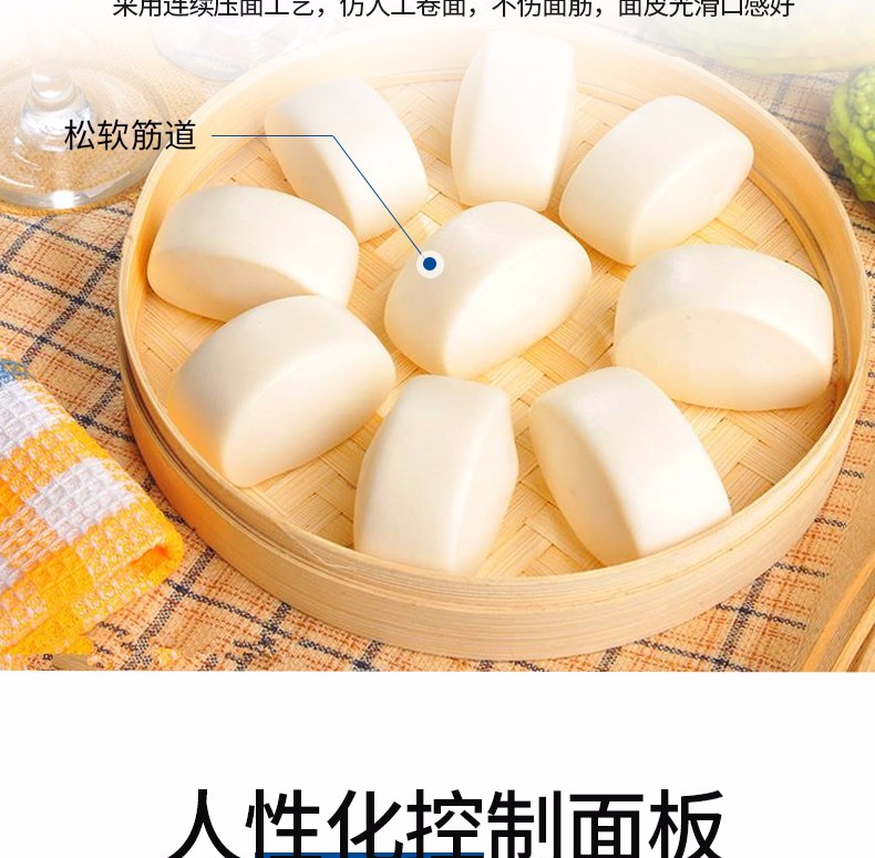 ?采用連續(xù)壓面制作工藝,仿人工卷面,不傷面筋,使面皮有光滑、品質(zhì)穩(wěn)定,口感好;