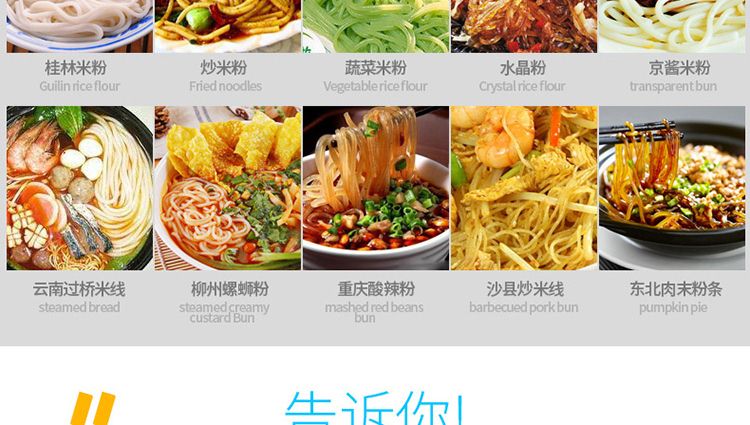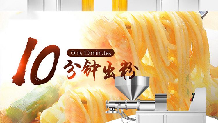 一步成型米粉機,一機多用:米粉機廣泛適用于所有含淀粉類糧食作物。大米、玉米、蕎麥、紅薯、土豆、綠豆、豌豆等都可以生產(chǎn),它不僅能生產(chǎn)米粉、米粉、朝鮮冷面、牛筋面、年糕、玉米面條、各種雜糧粉絲、各種面條、雜糧面條、彩色面條等多種面食品