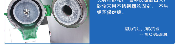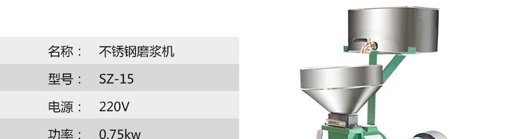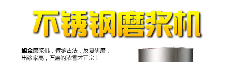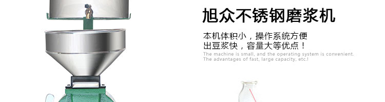 旭眾牌SZ-12/15/20不銹鋼磨漿機(jī)結(jié)構(gòu)合理,造型美觀,操作簡便。具有體積小、重量輕、噪音低、省力,性能穩(wěn)定、質(zhì)量可靠、容易清洗、移動方便等優(yōu)點(diǎn),適用于豆制品廠、飲食服務(wù)業(yè)、食堂、飯店及個(gè)體商戶使用。
