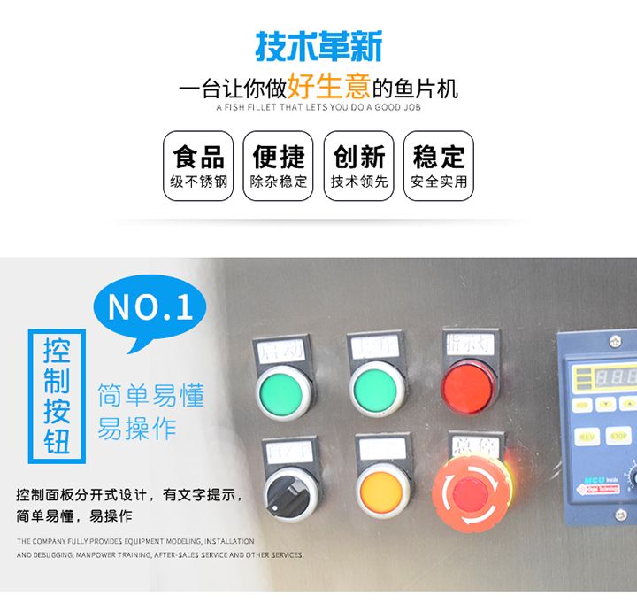本機外形美觀、操作簡單、效率高、耗電小、清潔保養(yǎng)容易、安全衛(wèi)生、切肉效果好等優(yōu)點,切鮮魚機器其造型美觀、結構緊湊、堅固耐用,切魚片機器價格實惠是賓館、酒家、食堂、肉類加工場等單位所不可缺少的肉類加工機械。