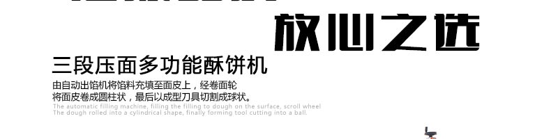 SZ-09C三段壓面酥餅機(jī),生產(chǎn)速度、制品大小、重量、皮餡比例可隨時調(diào)整、變更。適用于蘇式月餅、綠豆餅、老婆餅、蔥油餅、鮮花餅、肉松餅、金華酥餅等。適用于大、中型糕餅生產(chǎn)廠家,免費提供工藝技術(shù)。