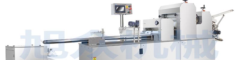 旭眾牌SZ-09C多功能三段酥餅機(jī)采用三段漸進(jìn)式打薄再將面皮壓成合適的厚度。由自動出餡機(jī)將餡料充填至面皮上,經(jīng)卷面輪將面皮卷成圓柱狀,最后以成型刀具切割成球狀。長條狀餅胚,整個成形過程不會破壞面皮筋性,保持手工原味。