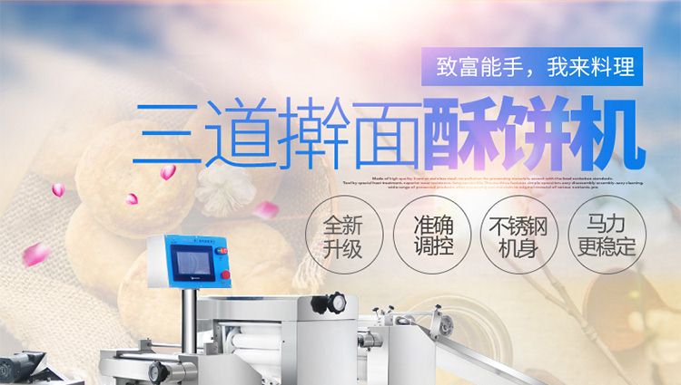 XZ-15C三道搟面酥餅機,仿手工制作面食產(chǎn)品的機型,占地面積小,重量輕,運用搟面杖壓面和打擊面團(tuán),以保證高面筋性和面帶的密度,并綜合考慮面食的口感而研發(fā)??缮a(chǎn)東北糖酥餅,東北大香酥餅,蘇式月餅,芝麻餅,鮮花餅,老婆餅。購機免費提供工藝技術(shù)