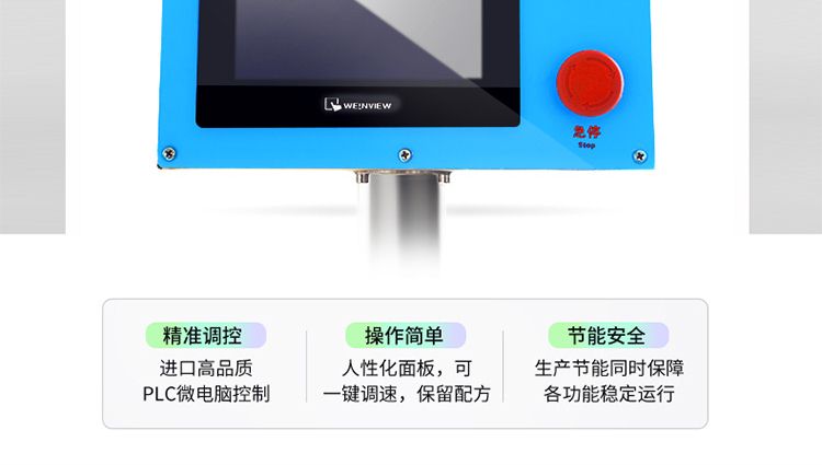?本機主控制系統(tǒng)采用三菱PLC控制,點控部分采用進(jìn)口光電感應(yīng)器控制,自動化程度高;