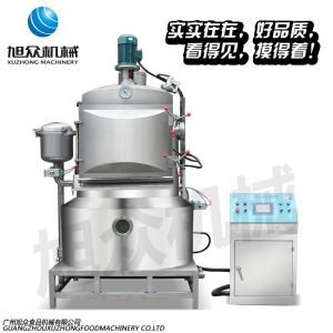 ●降低油脂劣變程度:炸用油的劣化包括氧化、聚合、熱分解,而以水或水蒸汽與油接觸產(chǎn)生水解為主。在真空油炸過程中,油處于負壓狀態(tài),溶于油脂中的氣體很快大量逸出,產(chǎn)生的水蒸汽壓力較小,而且油炸溫度低,因此,油脂的劣化程度大大降低。